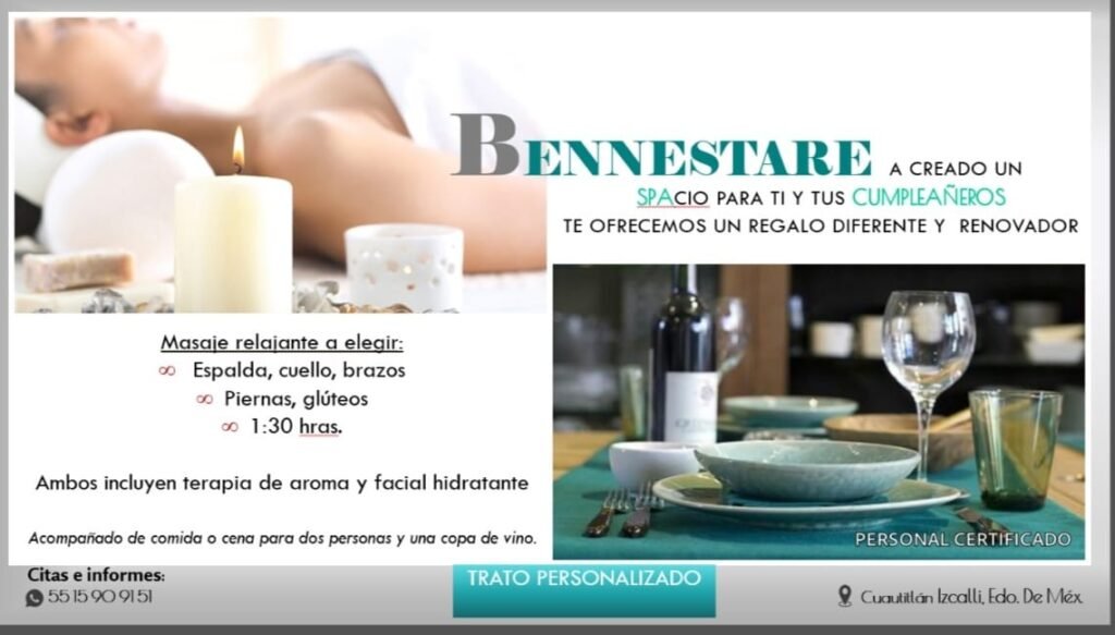 Todos los servicios incluyen aromaterapia inhalada o tópica, bebida hidratante y musicoterapia.